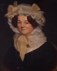 Catherine Morres Portrait of Catherine Morres, she is wearing a large white muslin bonnet and a black dress.